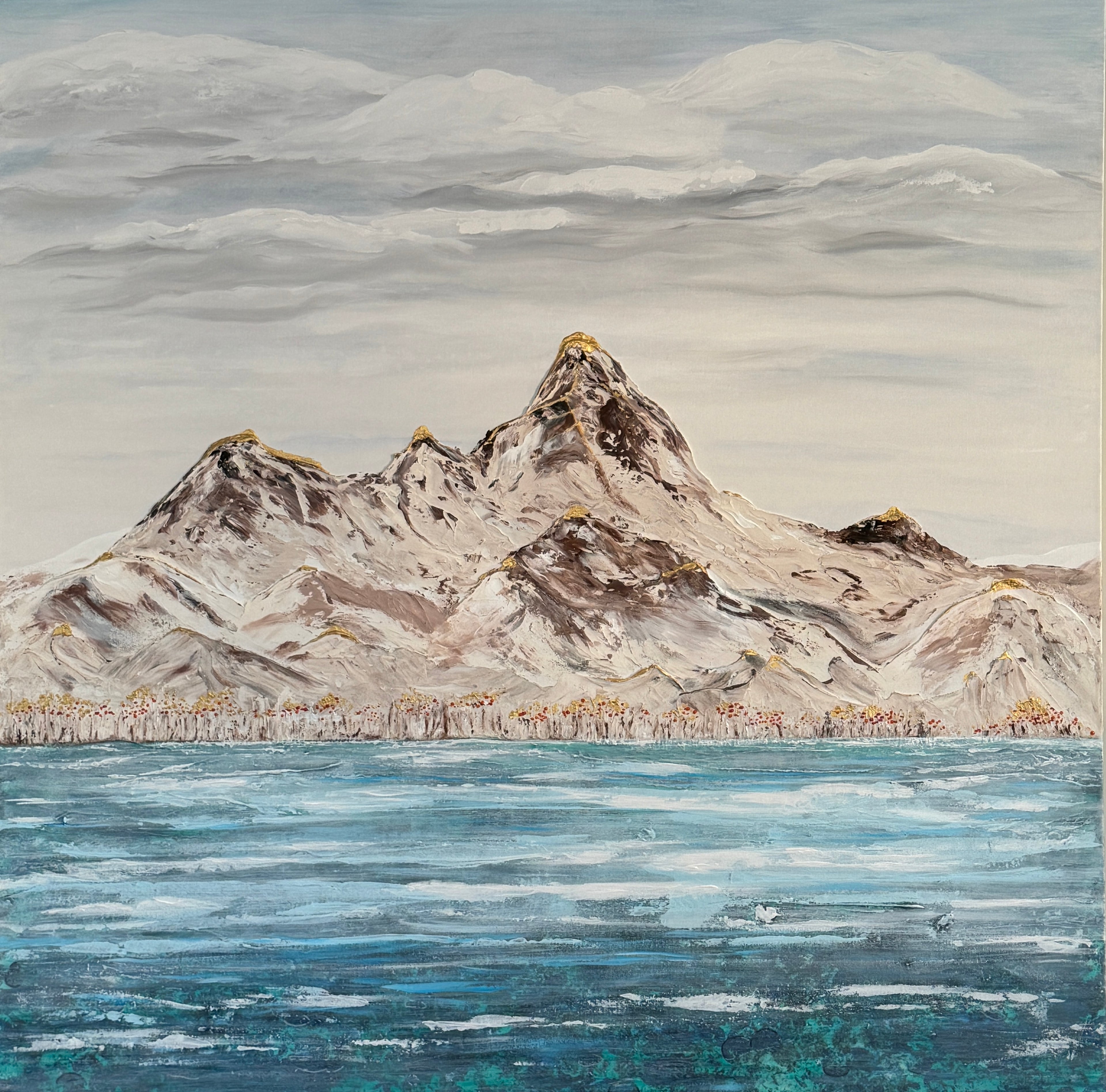 Mount Gold Plated. Mixed media on canvas. 24 x 36 inches.