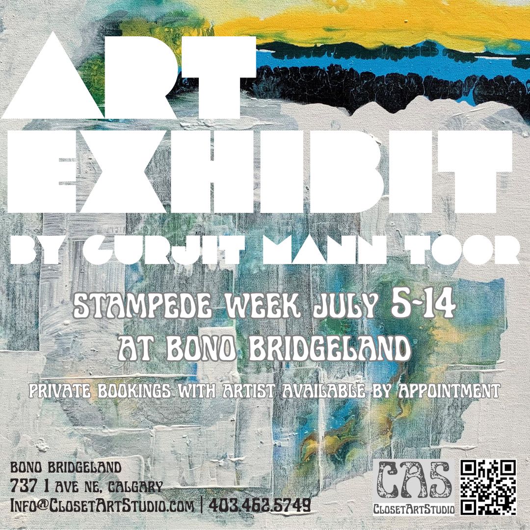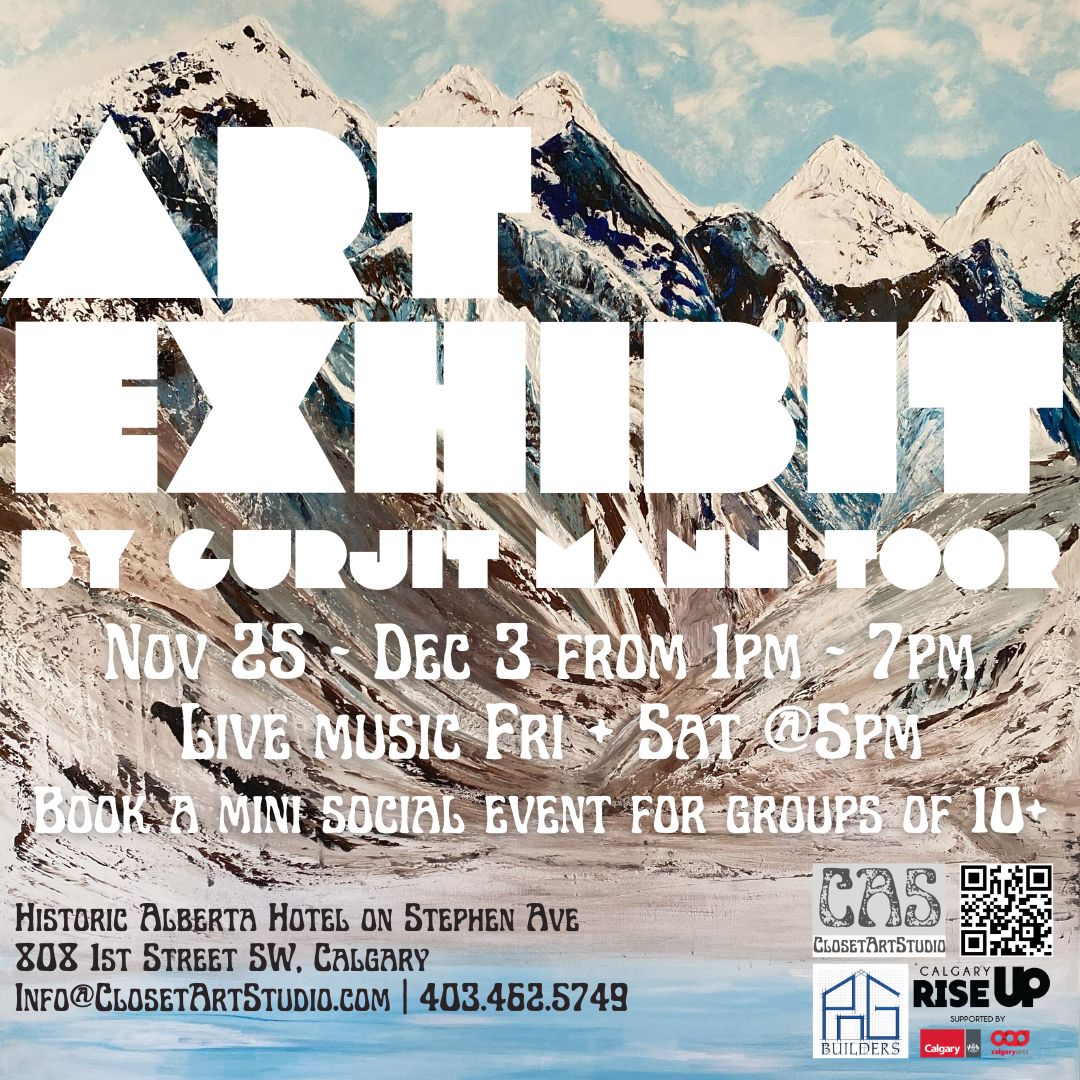 Retrospective Solo Exhibition showcasing two decades of artwork by Gurjit Mann Toor in 2023. Proudly presented at the historic Alberta Hotel on Stephen Avenue Walk in Calgary, AB, Canada.