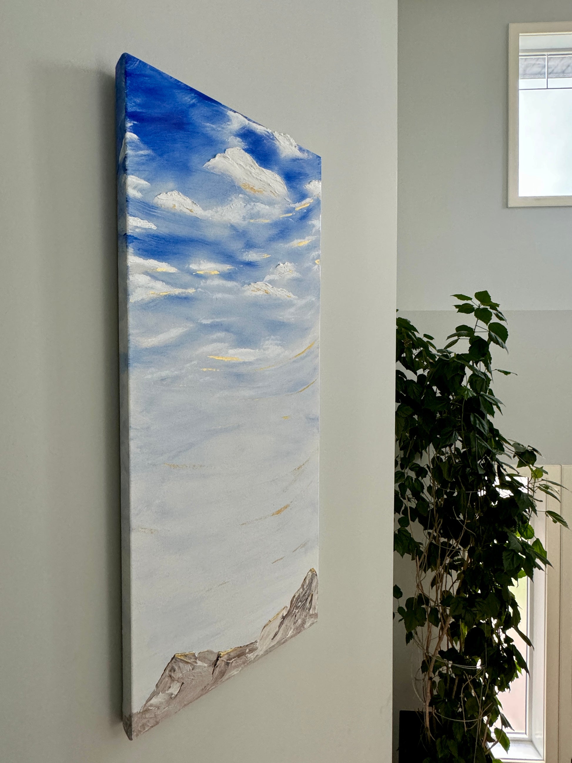 Breezy. Texture and acrylic on canvas. 16 x 40 inches.